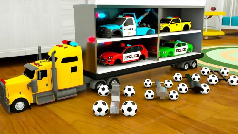ساخت ماشین پلیس با توپ فوتبال - ماشین های سنگین روی سرسره و چرخ میوه ای