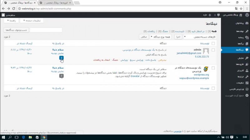 هر بازدید کننده که وارد صفحات سایت شما می شود می تواند در انتهای صفحات دیدگاه خودش را قرار دهید. البته به شرطی که شما به عنوان مدیر سایت دیدگاه ها را نبسته باشید. پس از ارسال دیدگاه ها از پیشخوان می توانید آنها را مدیریت کنید.