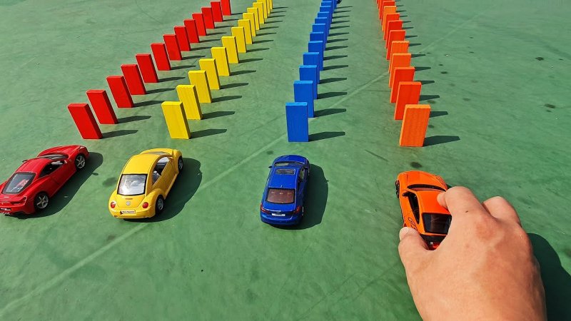 بازی با ماشین های اسباب بازی و دومینوهای رنگی