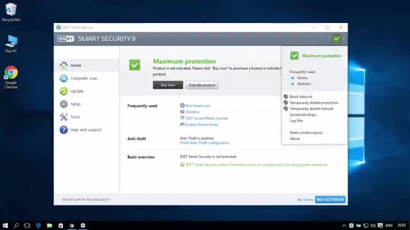 به قسمت چهارم از آموزش نرم افزار ESET Smart Security می رسیم که قصد داریم نوار ابزار بالای نرم افزار را خدمت شما معرفی کنیم. یک دکمه در بالا سمت راست نرم فازار وجود دارد که زمانی که روی آن کلیک می کنید یک فهرست شامل پیوندهایی برای رفتن به قسمت های مختلف وجود دارد. هر کدام کاری را برای ما انجام می دهند