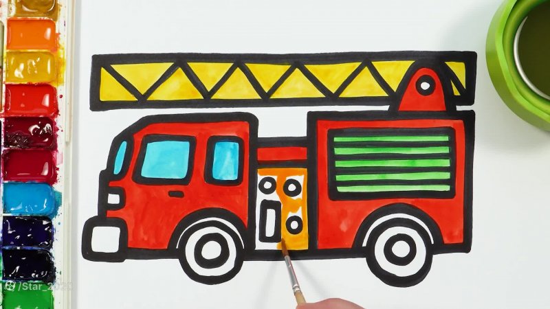 آموزش نقاشی - ماشین آتش نشانی برای کودکان