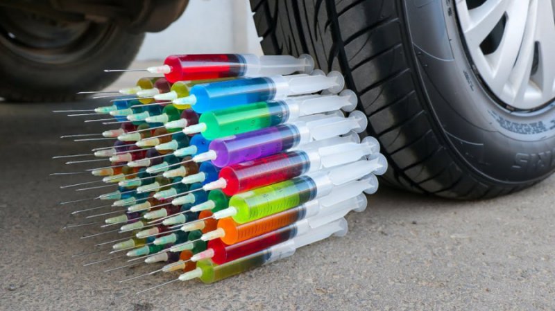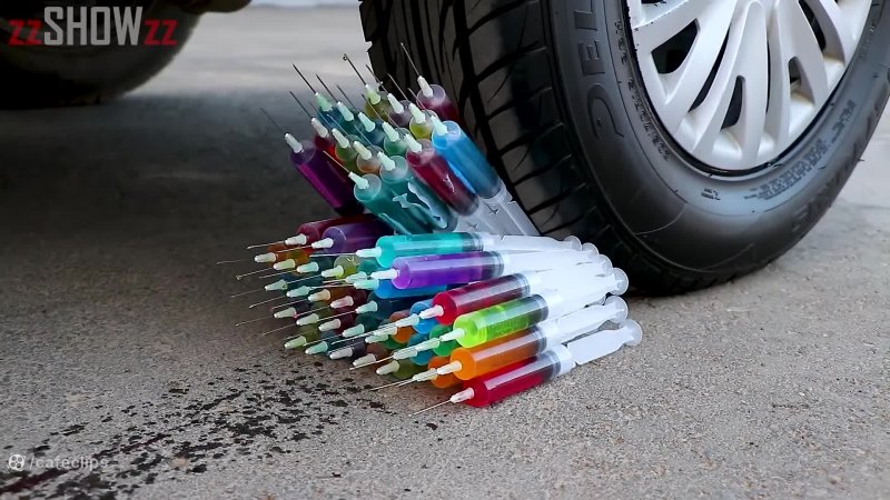 فیلم خرد کردن و له کردن وسایل کیوت || له کردن آمپول های رنگی زیر لاستیک