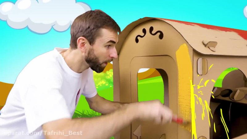 ساشا خانه های بازی مقوایی را با دست های رنگی رنگ می کند