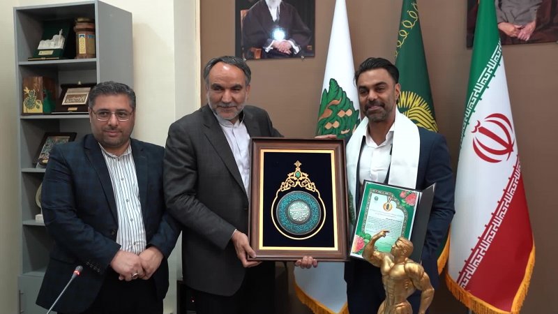 مهدی ماهانی ورزشکار پرورش اندام و بازیگر سینما و تلویزیون مدال طلای خودش در مسابقات جهانی مستر یونیورس را به موزه آستان قدس رضوی اهدا کرد.