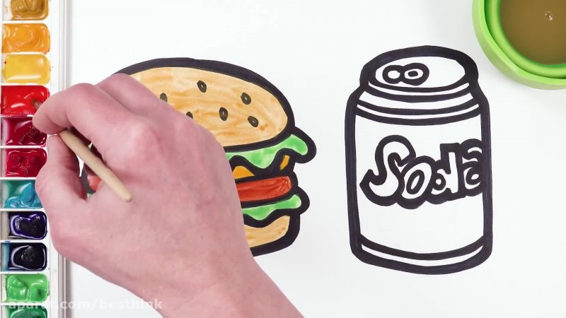 آموزش نقاشی به کودکان نقاشی همبرگر و نوشابه کوکا
