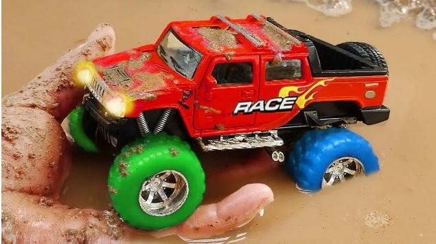 ماشین کوچولو اسباب بازی پسرانه :: ماشین پلیس و ماشین های اسباب بازی داخل آب گل آلود و پل سازی