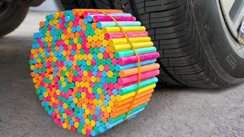 چالش له کردن اشیا نرم و ترد با ماشین / گچ های رنگی در مقابل ماشین