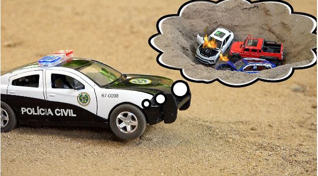 ماشین پلیس اسباب بازی - کارتون ماشین های تصادفی داخل گودال و عملیات نجات