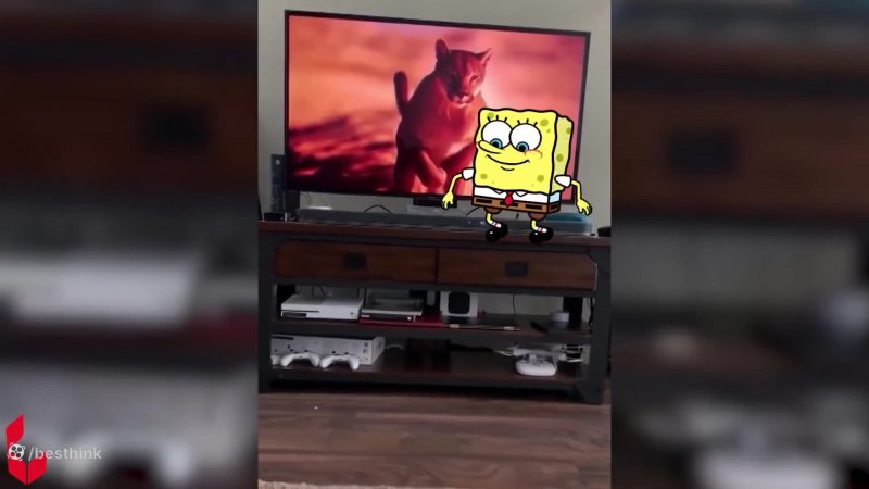 طنز باب اسفنجی و بازی با گربه ها کلیپ خنده دار باب اسفنجی در دنیای واقعی