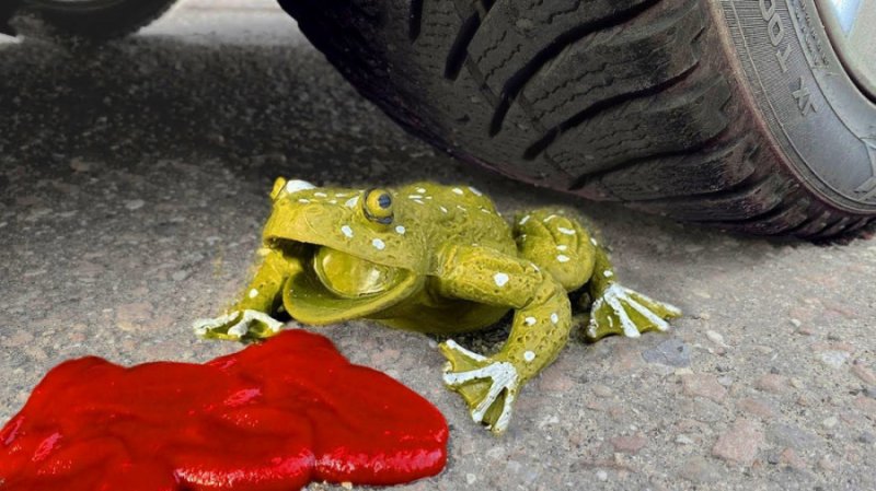 # له کردن وسایل کیوت زیر چرخ ماشین :: تفریحی سرگرمی :: له کردن قورباغه