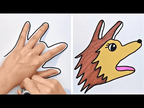 آموزش نقاشی کودکانه : نقاشی حیوانات با کمک دست : نقاشی فانتزی بامزه