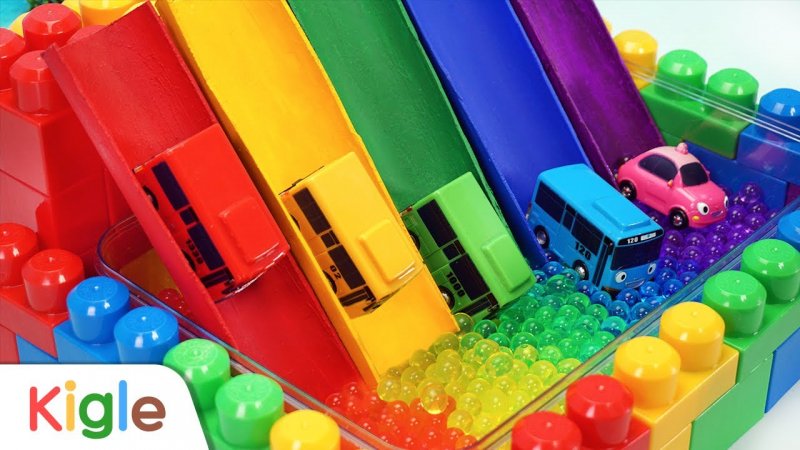 ماشین بازی در دنیای اسباب بازی ها قسمت جدید : اتوبوس های کوچولو روی سرسره رنگی