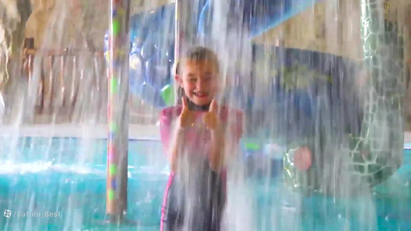 ساشا و بابا وانمود می کنند که با Waterslide بازی می کنند