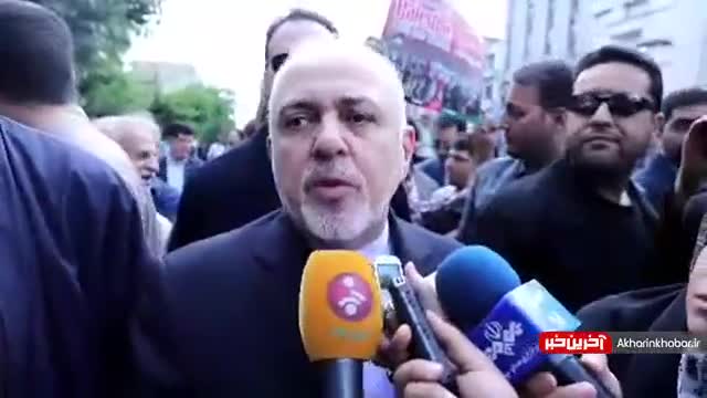 صحبت های بجای وزیر امور خارجه کشورمان محمدجواد ظریف در راهپیمایی روز جهانی قدس در میان مردم.