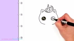 نقاشی گربه کودکانه (گربه تک شاخ کارتونی)