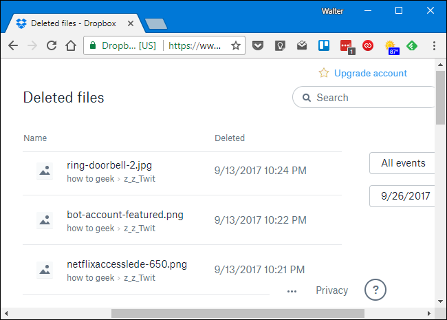 اگر فایل های موجود در یکی از سرویس های ابری که در آن ها عضو هستید ،همانند “Dropbox”، OneDrive و یا Google Drive پاک شده ،وارد اکانت خود در آن سرویس ابری شوید و سپس به بخش “Deleted Files” مراجعه کنید تا فایل های پاک شده تان را بازگردانید.