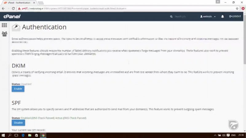 ابزاری با عنوان Authentication در بخش ابزارهای ایمیل در سی پنل وجود دارد که کارش انجام تنظیمات مربوط به رکوردهای SPF و DKIM می باشد. این دو رکورد برای افزایش اعتبار ایمیل هایی که از سرور شما ارسال می شود کاربرد دارد. با هم تنظیمات این بخش از سی پنل را هم یاد می گیریم.
