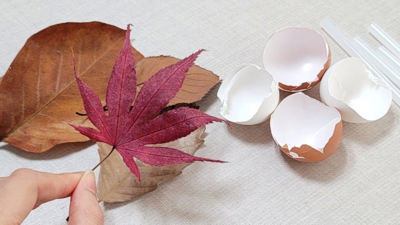 آموزش ساخت کاردستی تزیینی خیلی قشنگ با استفاده از برگ درختان و پوسته تخم مرغ.