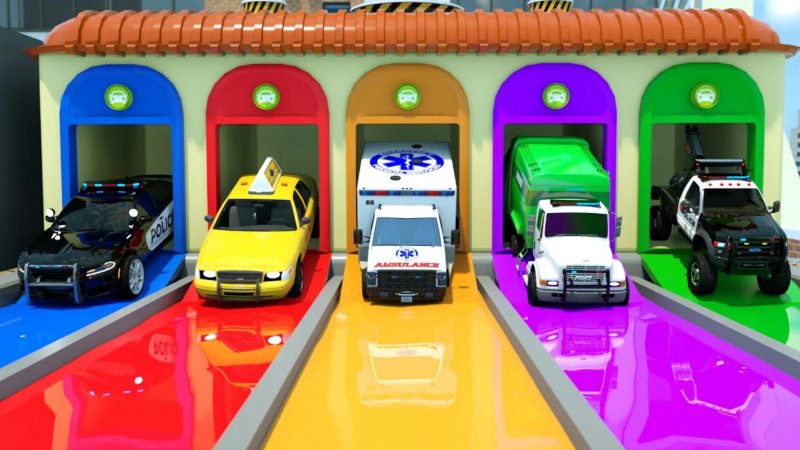 کارتون ماشین های رنگی - رنگ آمیزی ماشین های داخل ماشین پلیس بزرگ