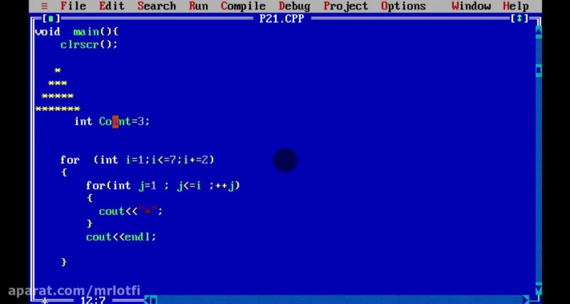 در این سری از آموزش های گروه هیلتون میخواهیم یک برنامه برای تشکیل یک هرم با کاراکتر دلخواه(*)بر روی صفحه بسازیم.ضمنا برای ساخت این برنامه از حلقه های تو در تو استفاده شده .برای درک بهتر مثال حتما آن را در کاغذ نوشته و خودتان آن را باز نویسی کنید.