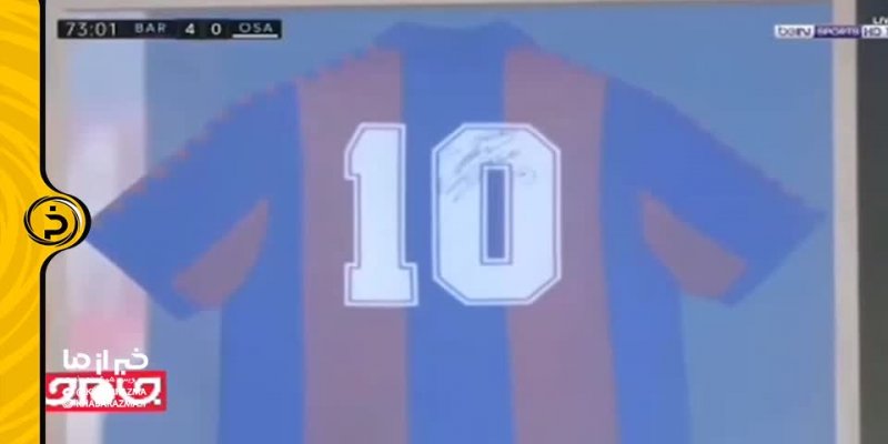 ادای احترام مسی به مارادونا پس از به ثمر رساندن گل چهارم بارسلونا در بازی با اوساسونا