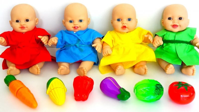 عروسک بازی دختر کوچولو و یاد گیری نام میوه و سبزیجات به انگلیسی