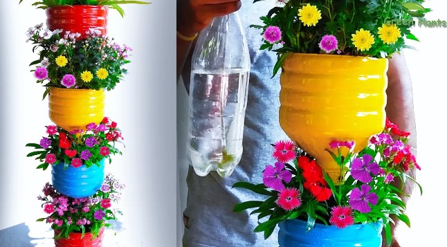ایده خلاقانه و بسیار جالب ساخت گلدان در خانه با بطری های بزرگ پلاستیکی