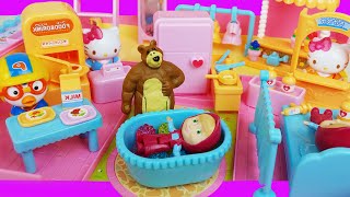 عروسک بازی دختر کوچولو آشپزی و دکتر بازی : ماشا و آقا خرسه و دکتر هلو کیتی