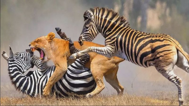 حیات وحش نبرد حمله شیرها به گورخرها - حمله ناموفق گورخرها