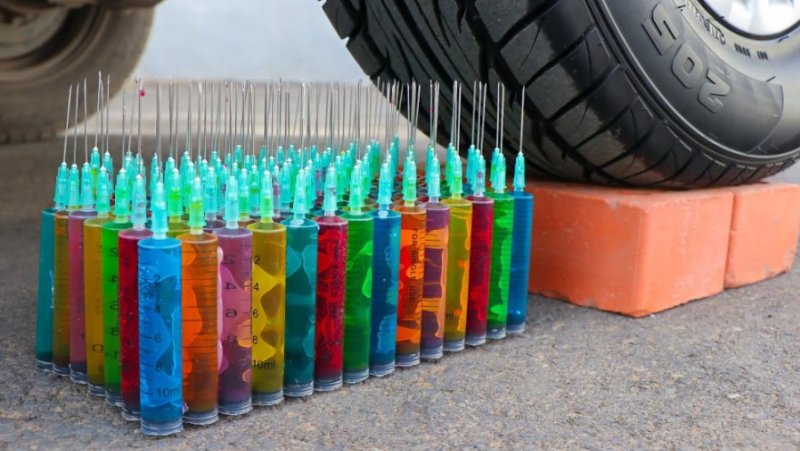 چالش تفریحی له کردن / خرد کردن وسایل آمپول رنگی / چالش له کردن وسایل زیر ماشین