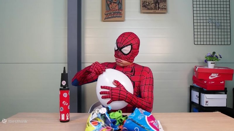 مرد عنکبوتی و ترکاندن بادکنهای روی دیوار چالش خنده دار مرد عنکبوتی