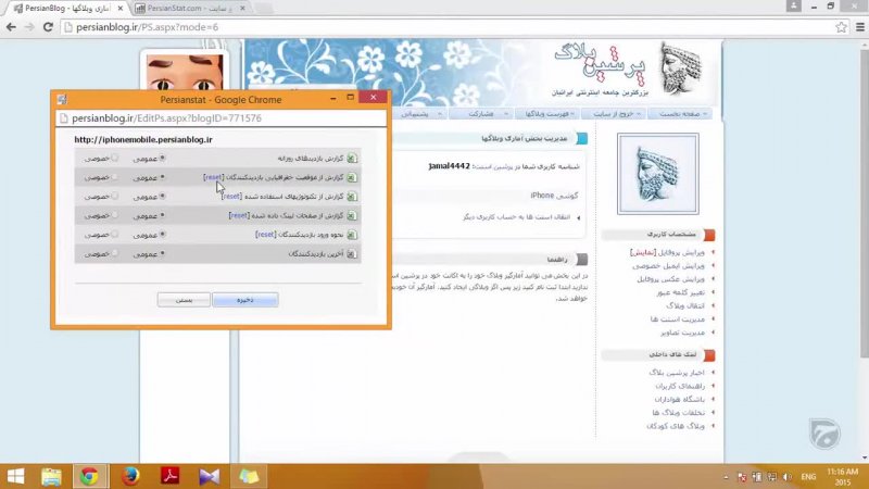 در بخش مرکزی مدیریت پرشین بلاگ زیربخشی با عنوان مدیریت استت ها وجود دارد که از آنجا می توانید ارتباط خود را با سایت پرشین استت برقرار کنید. این سایت سامانه آمارگیر مرتبط با پرشین بلاگ است که برای جمع آوری آمار وبلاگ خود می توانید به رایگان از آن استفاده کنید. اما قبل از آن باید حتما از این بخش یک استت را به وبلاگ خود معرفی کنید.