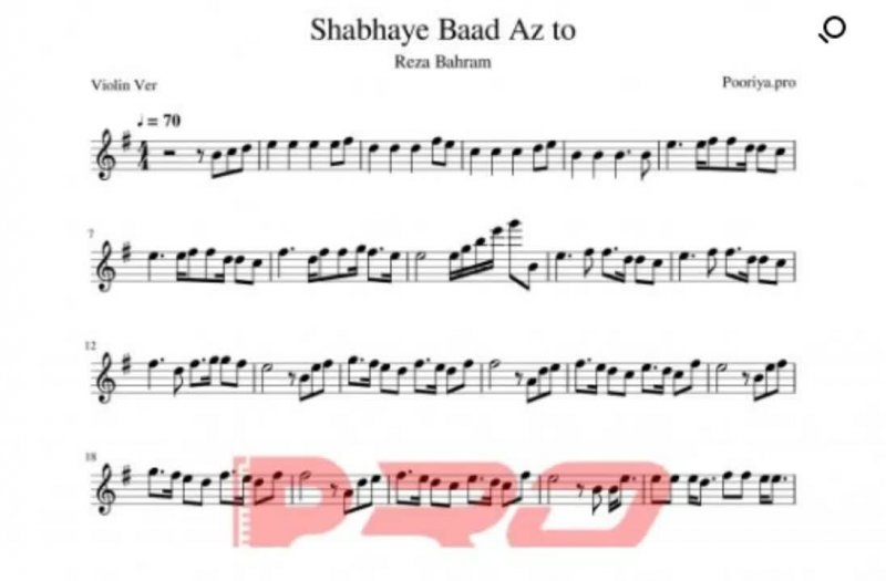 نت ویولون شبهای بعد از تو رضا بهرام که از طریق لینک زیر قابل دریافت است