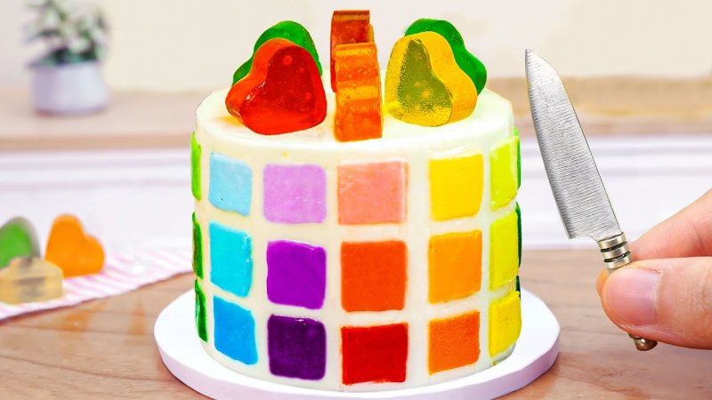 قسمت جدید : کیک با لایه های رنگی و تزیین ژله ای
