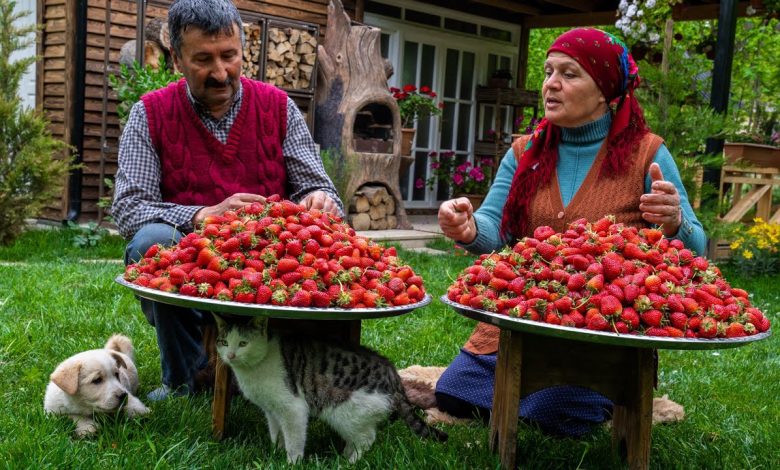 طرز تهیه مربای توت فرنگی تازه و کیک خانگی با لایه توت فرنگی