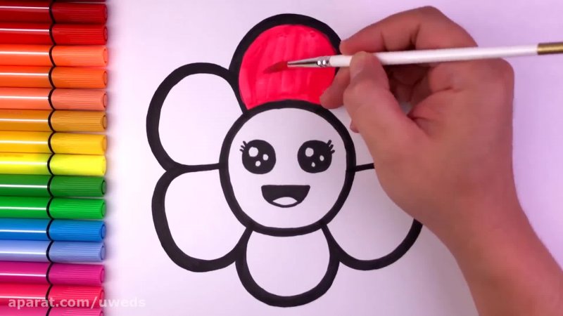 آموزش نقاشی به کودکان - نقاشی گل زیبا با رنگ آمیزی