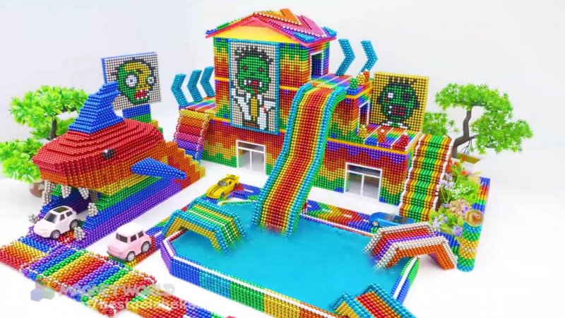 ویدیو ASMR ساخت زمین بازی کوسه زامبی و ساخت خانه بقا با غار مخفی و آبشار