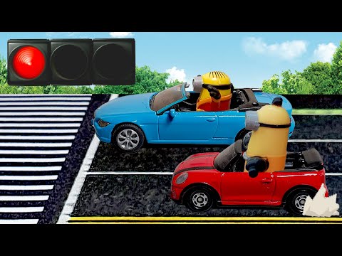 قسمت جدید مسابقه ماشین سواری مینیون ها و ماشین پلیس در تعقیب آن ها