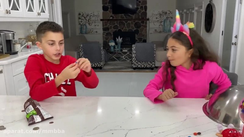 هایدی و زیدان با اسباب بازی آدامس های رنگی بازی می کنند