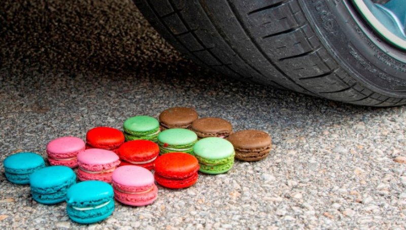 # له کردن و خرد کردن وسایل کیوت زیر ماشین | له کردن شیرینی خامه ای رنگی