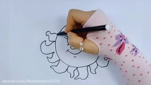 آموزش نقاشی خورشید زیبا برای کودکان (با رنگ آمیزی)