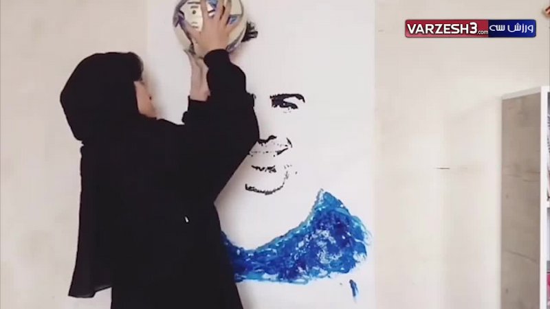 نقاشی پرتره فرهاد مجیدی با توپ فوتبال