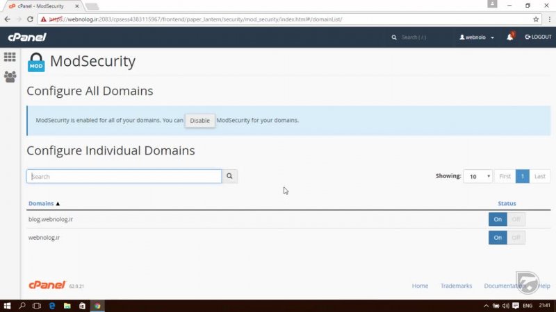 برای حفظ امنیت سطوح مختلفی وجود دارد که باید به آنها توجه داشته باشیم. یکی از این سطوح سطح نرم افزار است. اگر خواسته باشیم یک دیوار آتش سطح نرم افزار داشته باشیم روی سایت خو باید از افزونه ModSecurity آپاچی استفاده کنیم که انجام تنظیمات آن در سی پنل از بخش ModSecurity قابل انجام است.
