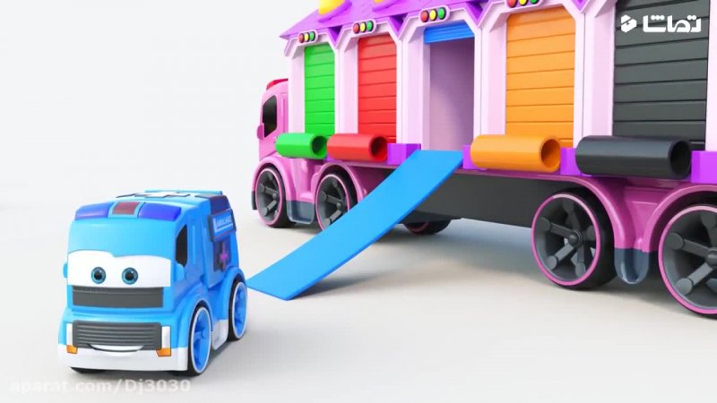 کارتون ماشین های رنگی : کامیون بزرگ پارکینگ ماشین آشغالی , آتش نشانی , آمبولانس , اتوبوس مدرسه و پلیس