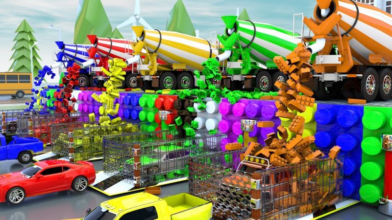 Car Vehicles Parking Game LEGO Blocks Concrete Mixer Trucks Street Vehicles Games 3D Gameplay