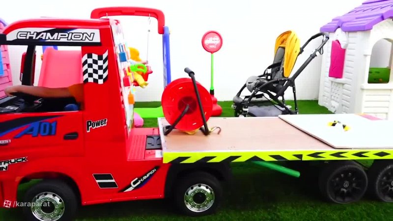 ولاد نیکی و مامانی شو - نیکی سوار بر کامیون یدک کش - بازی ماشین های اسباب بازی