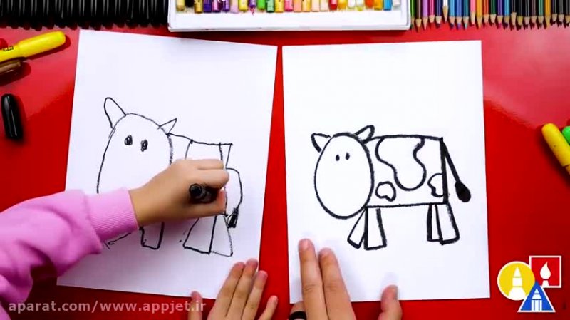 نقاشی کودکان - کشیدن نقاشی برای کودکان - آموزش کشیدن گاو