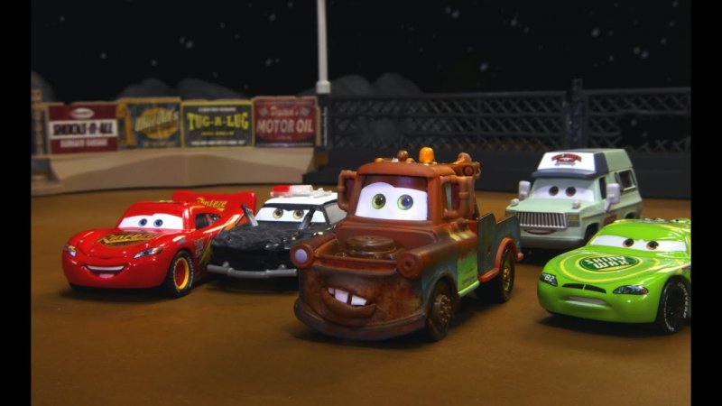 برنامه کودک کارتونی ماشین ها با شخصیت های انیمیشن مک کویین در زمین مسابقه.