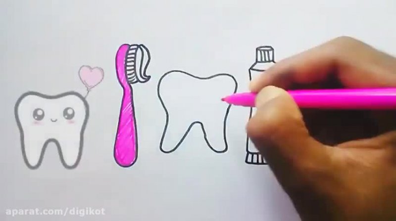 آموزش نقاشی با آبرنگ برای کودکان - قسمت 25 - دندان مسواک و خمیردندان