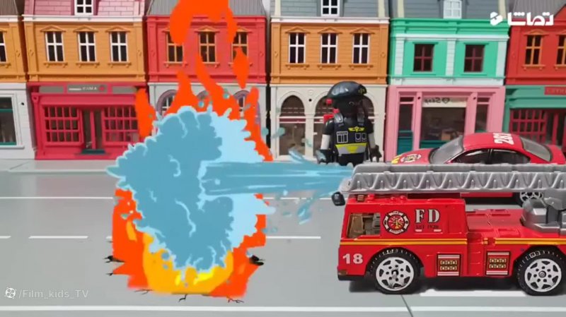 کارتون ماشین تصادفی : انفجار وسط خیابان و کمک ماشین آتش نشانی و آمبولانس